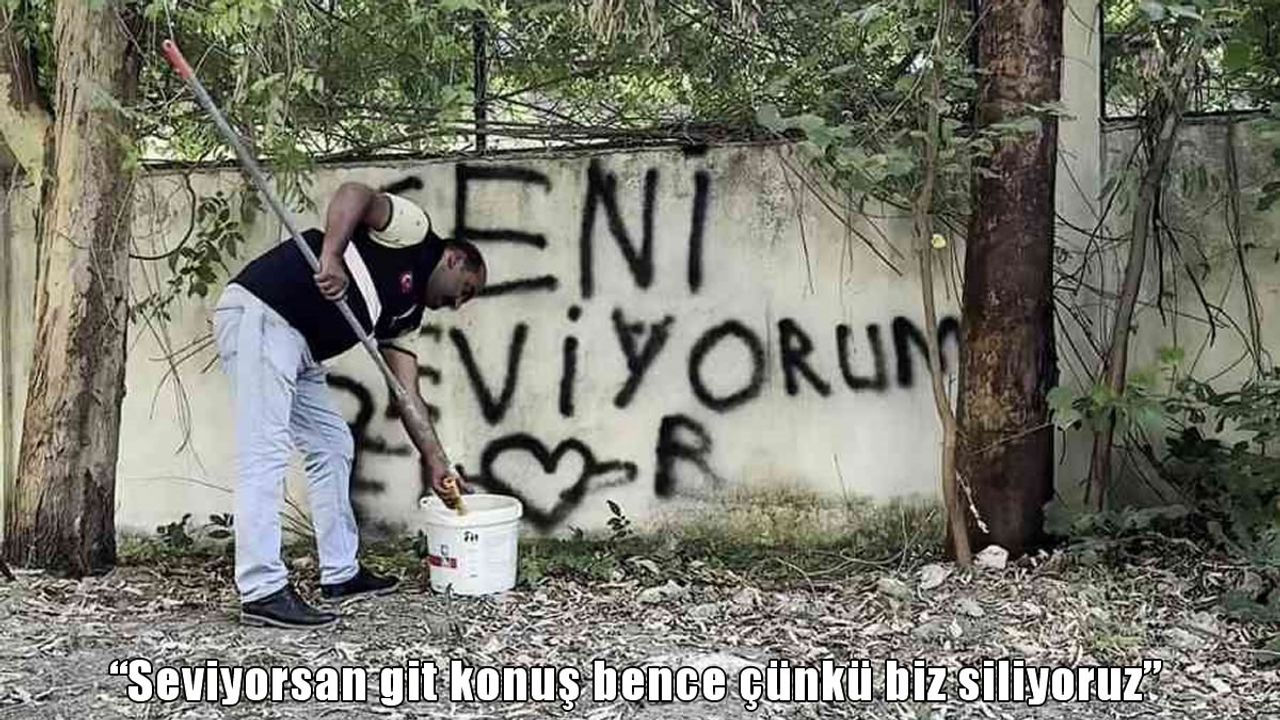 Antakya’da duvara yazılan bir aşk mesajı, belediye personelinin mizahi yaklaşımıyla dikkat çekti. Kent merkezinde bir vatandaş, duvarın üzerine sprey boya ile “Seni Seviyorum” yazıp yanına bir kalp çizdi. Duvar yazısını fark eden Antakya Belediyesi temizlik personeli, görevini yerine getirirken duvara silmeden önce bir not bıraktı. Personelin “Seviyorsan git konuş bence, çünkü biz siliyoruz” ifadeleri, olaya sıcak bir dokunuş kattı. Hem yazının silinme anı hem de belediye çalışanının yazdığı bu samimi not, çevredekiler tarafından cep telefonuyla kaydedildi. Görüntüler kısa sürede sosyal medyada yayılarak binlerce kez paylaşıldı.