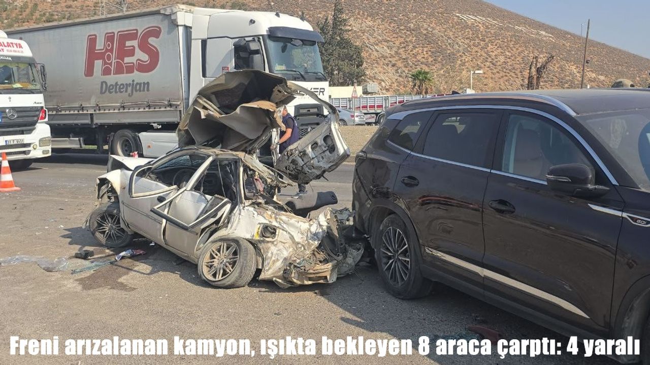 HABER49- Hatay’ın İskenderun-Antakya kara yolunda freni arızalanan bir kamyonun kırmızı ışıkta bekleyen araçlara çarpması sonucu zincirleme kaza meydana geldi. 8 aracın karıştığı kazada 4 kişi yaralanırken, olay yerinde büyük panik yaşandı.