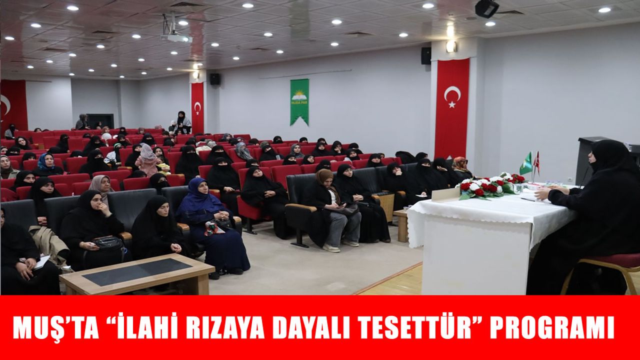 HABER49-HÜDA PAR Muş İl Kadın Kolları tarafından “İlahi Rızaya Dayalı Tesettür” konulu bir program düzenlendi. Muş Öğretmenevi Konferans Salonu’nda gerçekleştirilen programa, HÜDA PAR Aileden Sorumlu Genel Başkan Yardımcısı Aynur Sülün konuşmacı olarak katıldı.