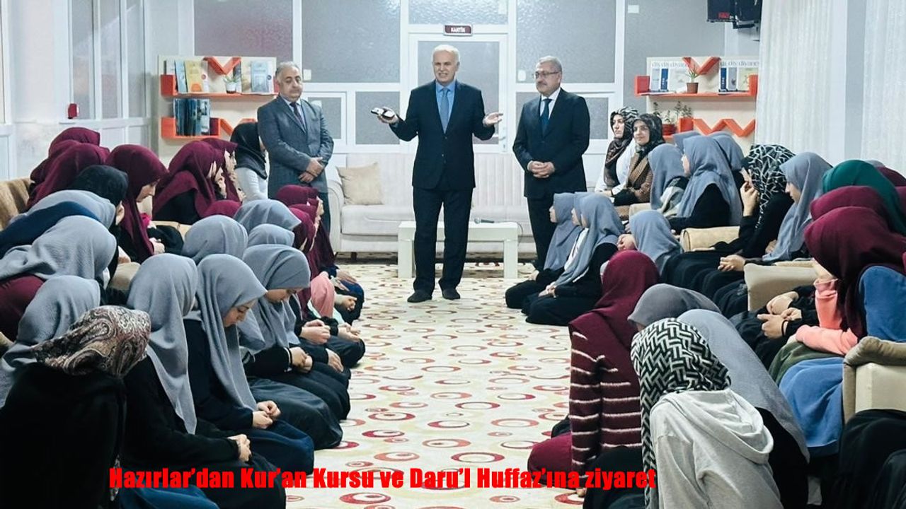 HABER49- "1001 Hatim Dua Programı" için Erzurum'da bulunan DİB Başkan Yardımcısı Dr. Hazırlar, İl Müftüsü Yaşar Çapçı ve Palandöken İlçe Müftüsü Ahmet Gözcü ile beraber; Palandöken İlçe Müftülüğü'ne bağlı Yenişehir Yatılı Kız Kur'an Kursu'nda hafızlık eğitimi alan öğrencilerle buluştu. Burada hafızlarla hasbihal eden Başkan Yardımcısı Dr. Hazırlar, öğrencilere yönelik hafızlığın önemine dair bir konuşma yaptı. Başkan Yardımcısı Hazırlar, Kur'an kursu öğreticileriyle yaptığı toplantının ardından ziyaretini tamamladı.