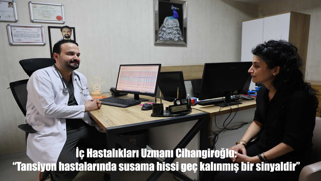 HABER49- İç Hastalıkları Uzmanı Dr. Ahmet Cihangiroğlu, tansiyon hastalarına uyarılarda bulunarak hastaların susamayı beklemeden su içmeleri gerektiğini, susama hissinin geç kalınmış bir sinyal olduğunu ifade etti.