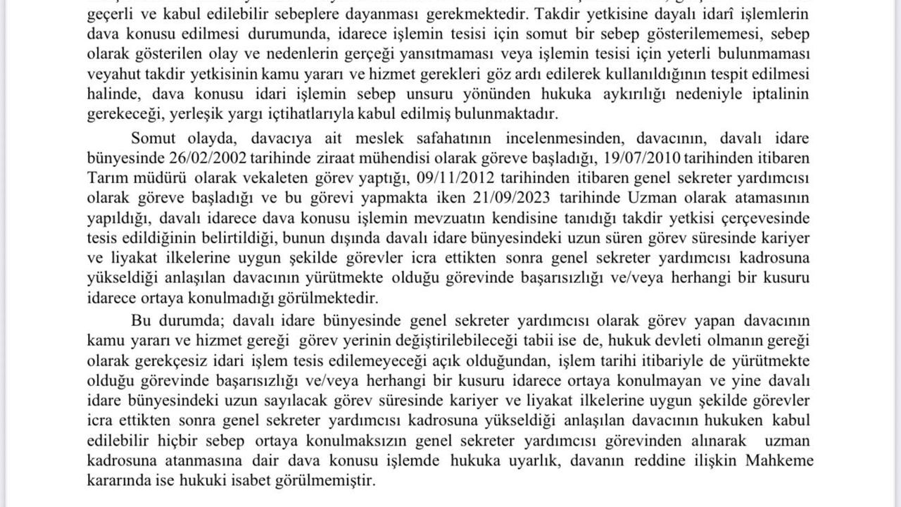 HABER49-İlk görevden alma kararı 2023 yılında uygulanmış, Turan karara itiraz ederek yargıya başvurmuştu. Mahkeme, Mehmet Nuri Turan lehine karar vererek görevine iade edilmesini sağlamıştı. Ancak, yargı kararının kesinleşmesinin ardından Turan yeniden görevden alındı. Bu gelişme, kurum içindeki personel ve yöneticiler arasında şaşkınlık ve tartışmalara yol açtı. İl Özel İdaresi çalışanları, görev değişikliklerinin sıklaşmasının kurumsal işleyişi ve hizmet kalitesini olumsuz etkileyebileceğini belirtiyor.