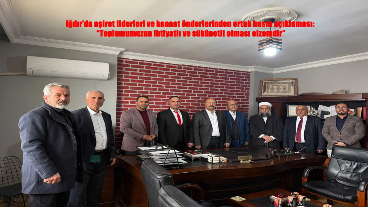 HABER49- Iğdır’da Aşiret Liderleri ve Kanaat Önderleri Derneği, Türkiye ve Orta Doğu’da yaşanan son gelişmelere ilişkin ortak bir basın açıklaması yaparak topluma itidal, birlik ve beraberlik çağrısında bulundu.