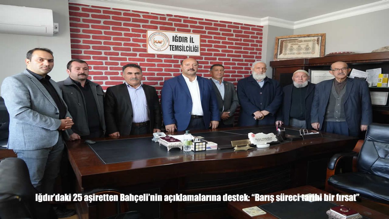 Kadim Aşiretler Federasyonu’na bağlı Iğdır’daki 25 aşiretin liderleri ve yaklaşık 150 kanaat önderi, düzenledikleri ortak basın açıklamasıyla Bahçeli’nin sözlerine ve yürütülen barış sürecine destek verdiklerini duyurdu. Açıklama, Kadim Aşiretler Federasyonu Iğdır İl Başkanı Ferhat Armağan tarafından yapıldı.