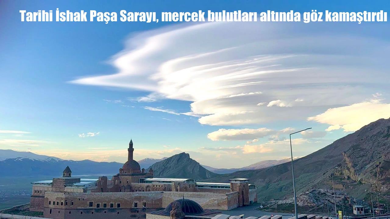 HABER49- Ağrı'nın Doğubayazıt ilçesinde etkili olan mercek bulutları, tarihi İshak Paşa Sarayı çevresinde göz kamaştıran görüntüler oluşturdu. Gökyüzünde tabaka halinde dizilen ve tabağı andıran şekilleriyle bilinen bulutlar, sarayın üzerinde örtü gibi konumlanırken, ortaya çıkan manzara kartpostalları aratmadı. Ağrı Dağı çevresinde de gözlemlenen bulutlar, gökyüzünde eşsiz görüntüler oluşturdu.