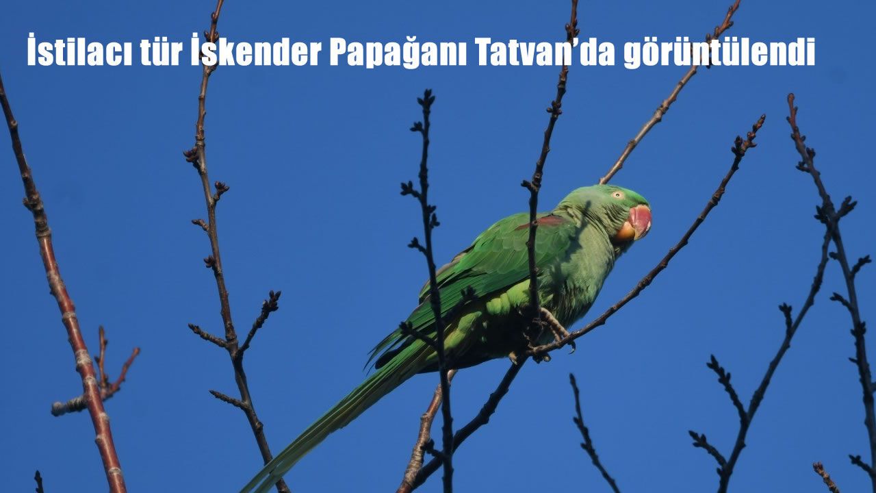 HABER49-Doğa Fotoğrafçısı Oktay Subaşı tarafından Tatvan sahilinde görüntülenen papağan, Ankara, İstanbul ve diğer büyükşehirlerin dışında Doğu Anadolu Bölgesi'nde de kayıt altına alındı. Subaşı, fotoğrafını çektiği papağanın önce evcil olduğunu düşündüğünü, çektiği fotoğrafları detaylı incelediğinde ise papağanın Türkiye'de 30 ilde görülen istilacı olarak bilinen yeşil renkli İskender Papağanı olduğunu anladığını söyledi. Subaşı, "Papağanı evimin yakınındaki Van Gölü sahilinde İşletme Parkı’ndaki bir ağaçta öterken fark ettim. Yeşil rengi ile çok güzel bir papağandı, fotoğraflarını çektim. İlk başlarda yakındaki evlerden kaçmış evcil bir papağan olduğunu düşündüm fakat çektiğim fotoğrafları detaylı incelediğimde ve yaptığım araştırmalarda özellikle son zamanlarda Ankara ve İstanbul gibi büyükşehirlerde sıkça görülen İskender Papağanı olduğunu anladım. Şimdiye kadar 30 ilde görülmüş. Bu bölgedeki ilk kaydını ben aldım" dedi.
