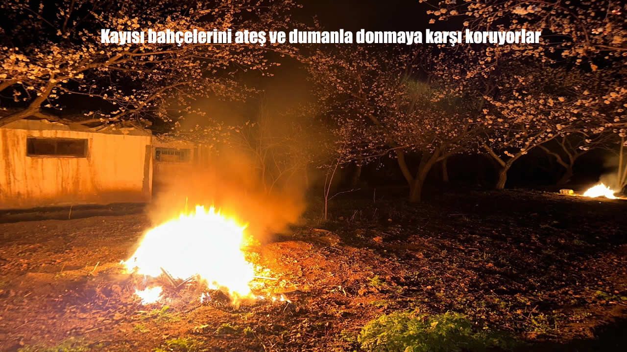 HABER49- Kağızman’da hava sıcaklıklarının eksilere düşmesiyle açan kayısı Çiçeklerini donma tehlikesine karşı eski bir yöntem olan duman ve ateşle koruyorlar.