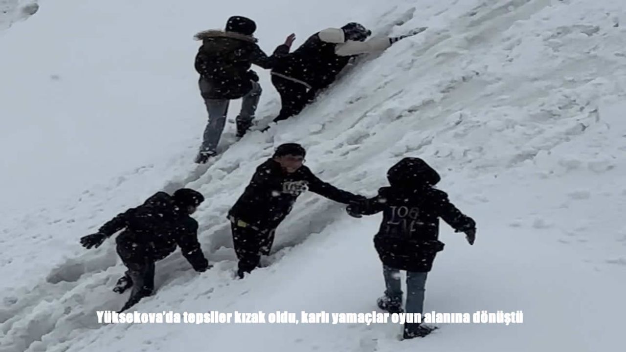 HABER49- Hakkari’nin Yüksekova ilçesinde etkili olan kar yağışı, günlük yaşamı zorlaştırırken çocuklar için eğlenceye dönüştü. Hafta sonu tatilini fırsat bilen çocuklar, mahalle yakınlarındaki karlı yamaçları adeta oyun alanına çevirdi.