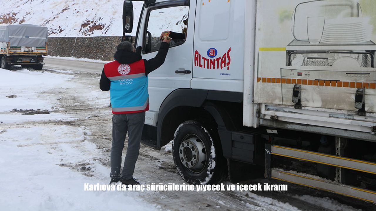 HABER49-Karlıova Kaymakamlığınca, etkili olan kar yağışı nedeniyle yolda durmak zorunda kalan sürücülere yiyecek ve içecek ikramı yapıldı.