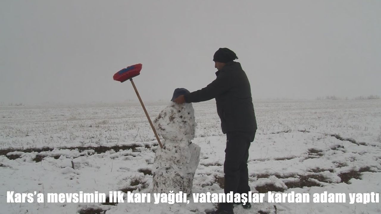 HABER49- Kars'a mevsimin ilk karı düştü. Son günlerde etkili olan soğuk hava ve yağışlar, özellikle yüksek kesimlerde yerini kar yağışına bıraktı. Kar yağışından dolayı etraf beyaza bürünürken, bir vatandaş kar yağışı altında kardan adam yaptı. Kardan adam yaptığını ifade eden vatandaşlar, "Kars'a mevsimin ilk karı yağdı, bu sene kış erken geldi. Ben de mevsimin ilk kardan adamını yaptım" dedi.