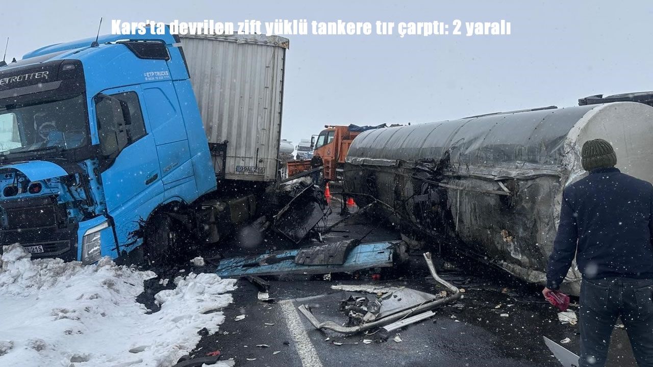 HABER49-Kaza, Kars - Çıldır kara yolunda meydana geldi. Kars’tan Çıldır istikametine seyir halindeki zift yüklü tanker havanın kar yağışlı ve sisli olmasından dolayı yoldan çıkarak yan yattı. Karşı yönden gelen kereste yüklü tırın tankere çarpmasıyla meydana gelen zincirleme kazada sürücüler yaralandı.