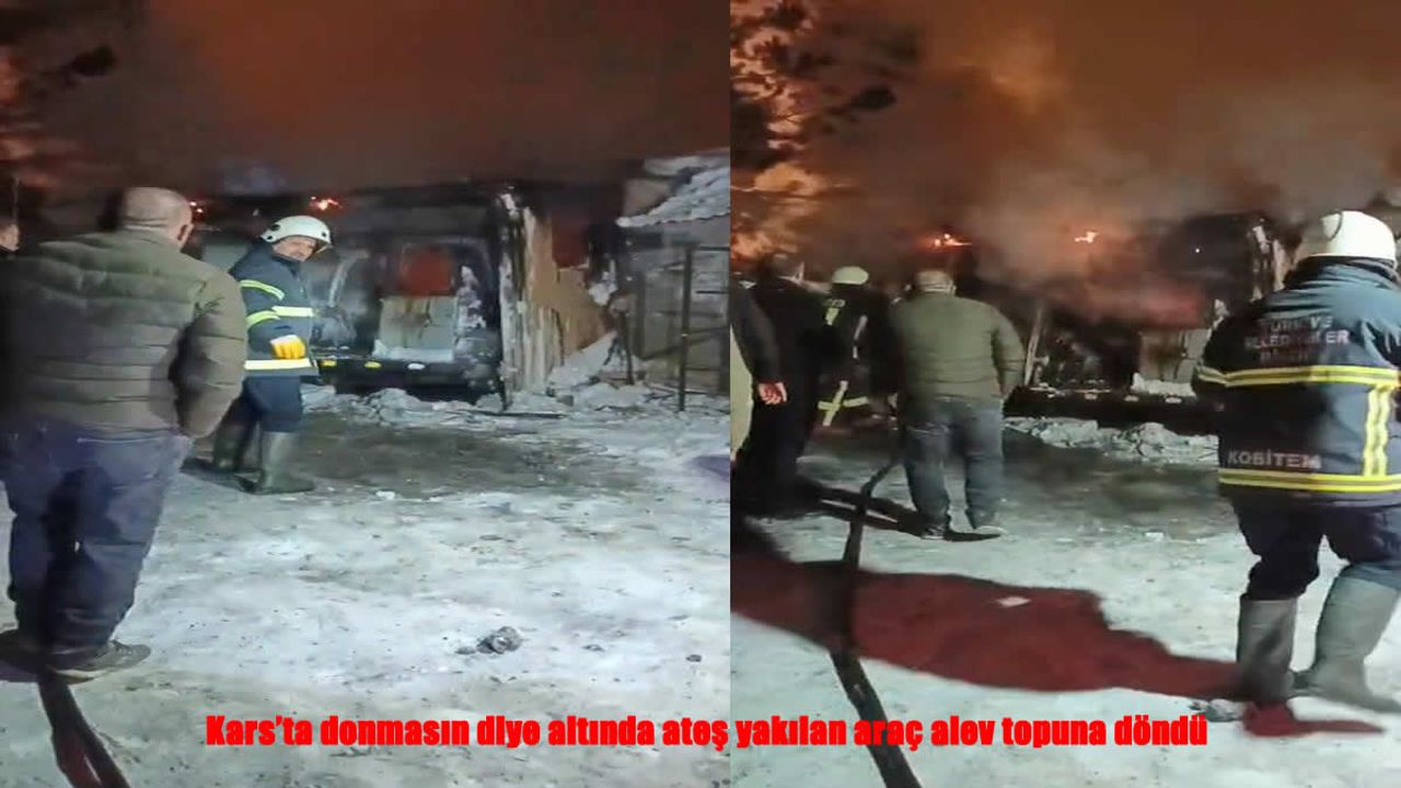 HABER49- Kars’ta soğuk havadan korunması için altında ateş yakılan bir araç, kısa sürede alev topuna dönerek kullanılamaz hale geldi.