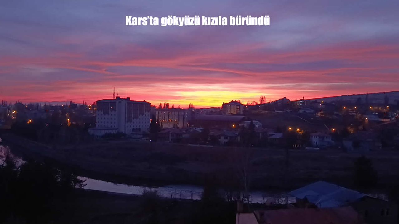 HABER49- Kars’ta akşam saatlerinde güneşin batışıyla birlikte gökyüzü adeta kızıl bir örtüye büründü. Türkiye’nin Kafkaslara açılan kapısı olan kentte ortaya çıkan bu eşsiz manzara, izleyenlere adeta görsel bir şölen sundu.