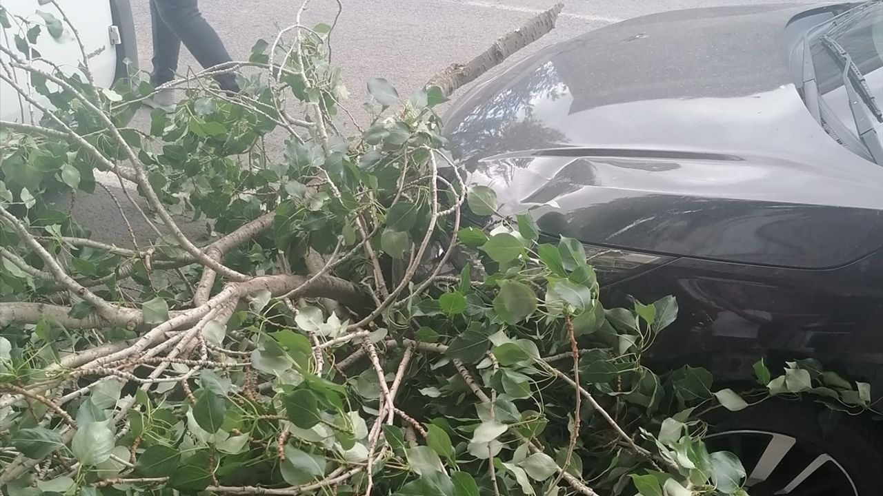 Rüzgar nedeniyle Faikbey Caddesi'nde park halinde bulunan Ö.Y'ye ait 36 AAT 282 plakalı otomobilin üzerine kırılan ağaç dalları düştü.