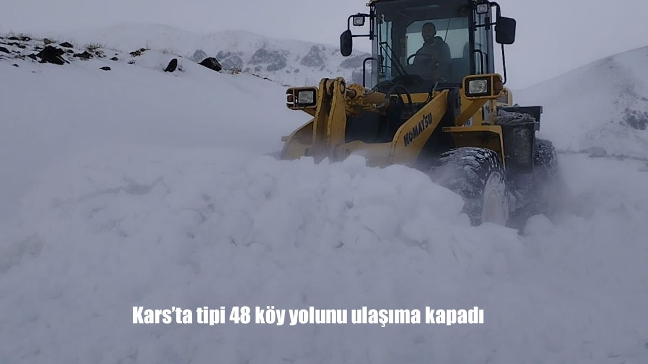 HABER49-Kars’ta tipiden merkezde 2, Akyaka'da 3, Arpaçay’da 18, Digor’da 9, Kağızman’da 3 ve Susuz'da 13 olmak üzere toplam 48 köy yolu tipi nedeniyle kapalı bulunuyor.