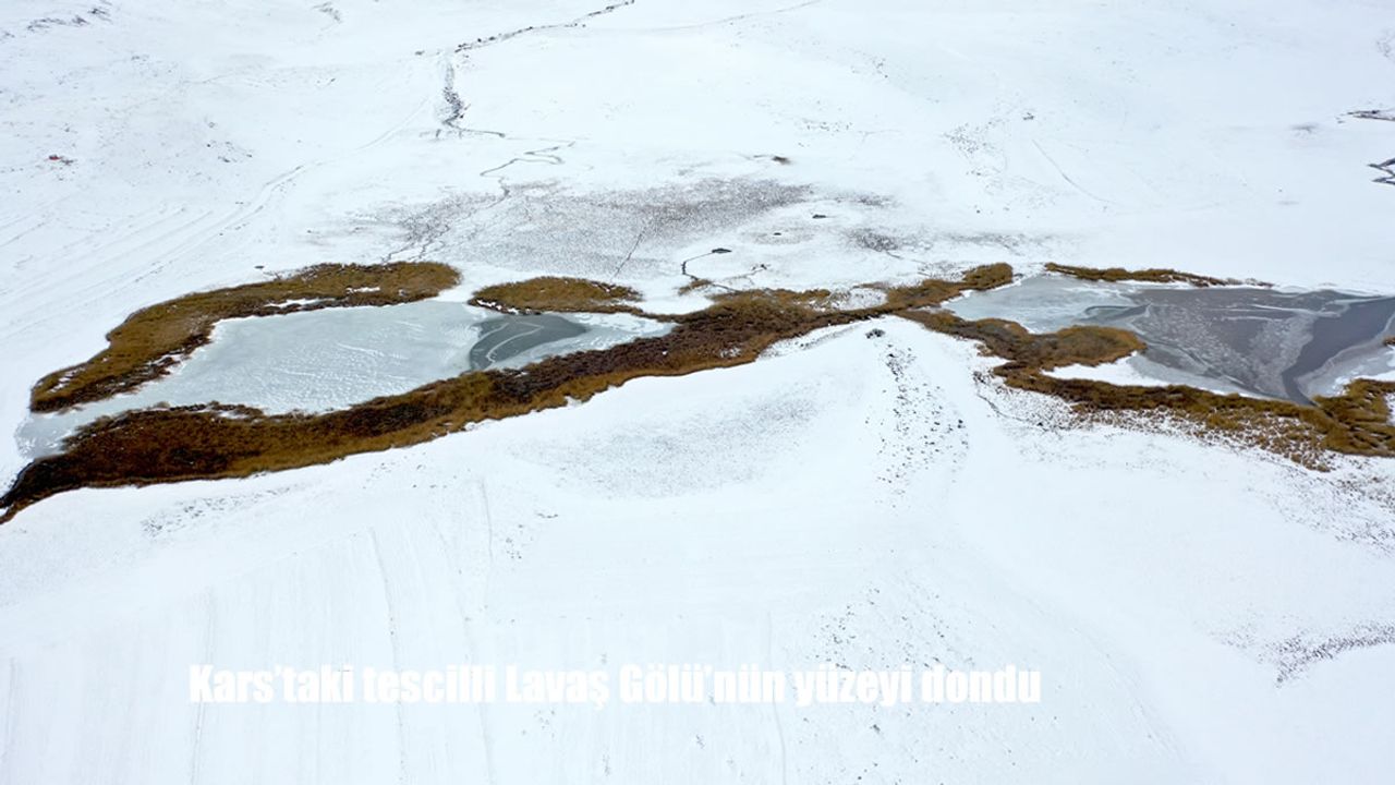 Potansiyel doğal sit alanı kapsamında bulunan ve 2019'da Cumhurbaşkanlığı kararıyla "kesin korunacak hassas alan" olarak tescillenen Lavaş Gölü'nün yüzeyi de soğukların etkisiyle dondu.