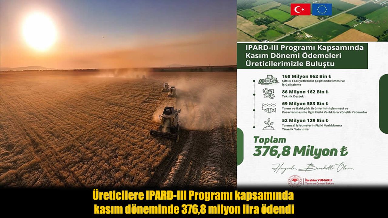 Programla girişimcilerin yanında olmaya devam ettiklerini vurgulayan Yumaklı, "Kasım dönemi kapsamında, çiftlik faaliyetlerinin çeşitlendirilmesinden teknik desteğe, işleme ve pazarlama tesislerinden tarımsal işletmelere kadar üreticilerimize toplam 376,8 milyon lira destekleme ödemesi yaptık. Üreten, geliştiren ve ülkemizin tarımsal gücüne değer katan tüm girişimcilerimizin yanındayız." değerlendirmesinde bulundu.