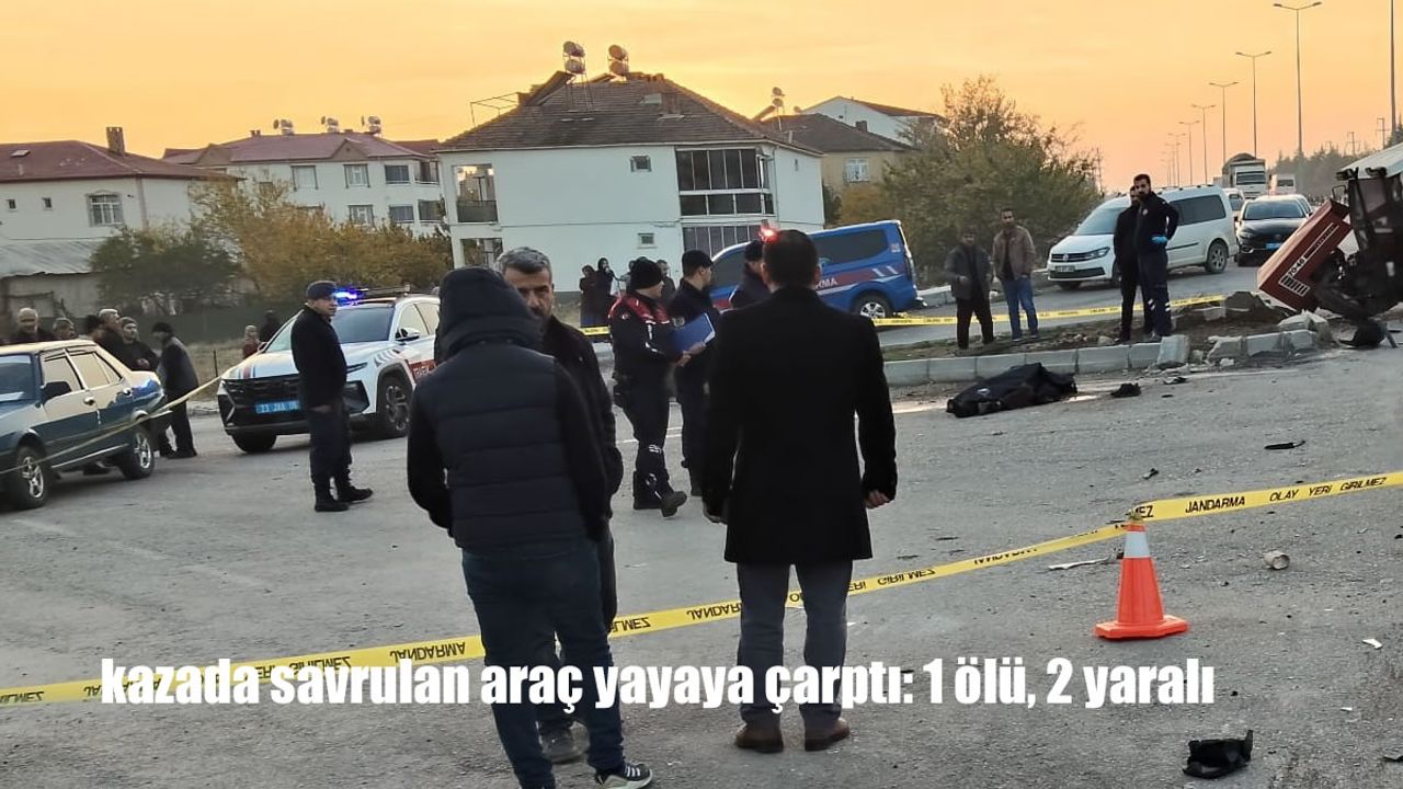 HABER49-Kaza, Yurtbaşı beldesi OSB yolunda meydana geldi. Edinilen bilgiye göre, kavşakta traktörle çarpışan otomobil savrularak, o esnada yolun karşışına geçmeye çalışan yayaya çarptı. Yaya olay yerinde hayatını kaybederken, 2 sürücü yaralandı. İhbar üzerine olay yerine jandarma ve sağlık ekipleri sevk edildi.