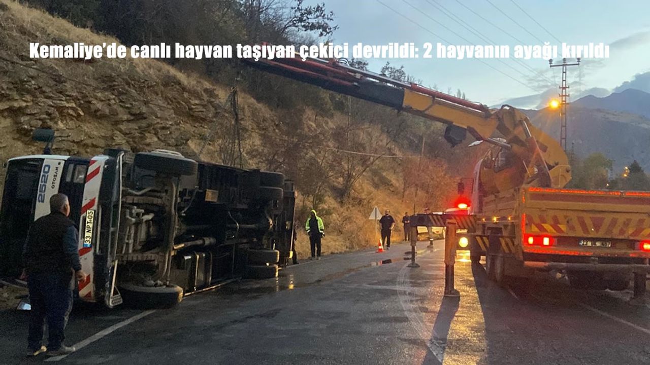 HABER49-Edinilen bilgiye göre, İliç ilçesinden Elazığ istikametine seyir halinde olan 25 HA 722 plakalı kamyonet, yolda arıza yapınca 33 NPT 05 plakalı çekiciye yüklenerek taşınmaya başlandı. Ancak gece saat 02.00 sıralarında Ariki Mahallesi yakınlarında hayvanların başka araca aktarılması için durulan noktada, hareketli yük nedeniyle çekici devrildi.