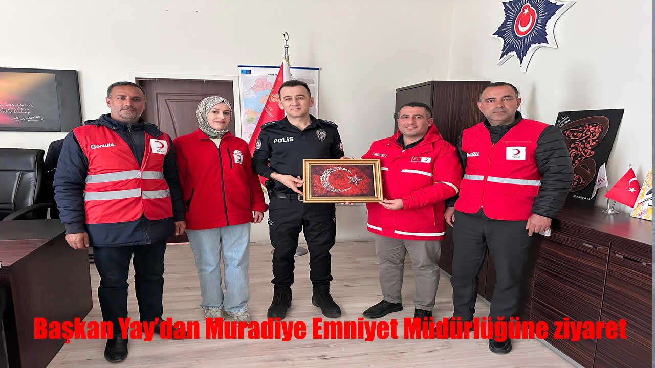HABER49- Kızılay Muradiye Şube Başkanı Selçuk Yay, Türk Polis Teşkilatı'nın 181. kuruluş yıl dönümü ve Polis Haftası kapsamında, beraberindeki heyetle Muradiye İlçe Emniyet Müdür Vekili Başkomiser Ömer Üresin’i makamında ziyaret etti.