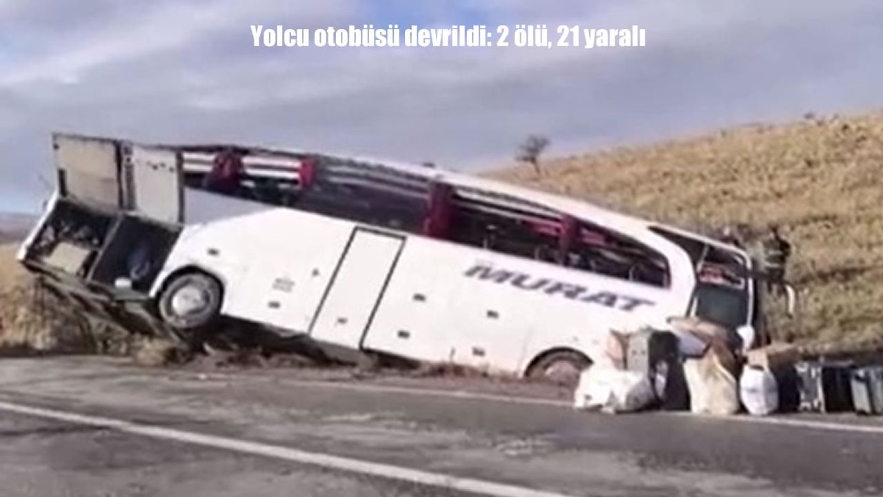 HABER49- Afyonkarahisar’da kontrolden çıkarak devrilen yolcu otobüsünde ilk belirlemelere göre 2 kişi öldü, 21 kişi yaralandı. Kaza, Dinar ilçesine bağlı Tatarlı beldesi yakınlarında meydana geldi. Edinilen bilgilere göre, Elazığ Murat Turizm’e ait yolcu otobüsü henüz belirlenemeyen bir sebeple kontrolden çıkarak devrildi.
