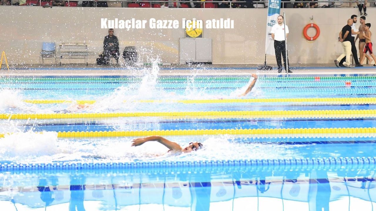 Yeşilyurt Belediyesi'nin ev sahipliğinde Gençlik ve Spor İl Müdürlüğüne ait Kapalı Yüzme Havuzu'nda gerçekleşen "Gazze İçin Umuda Kulaç At"
