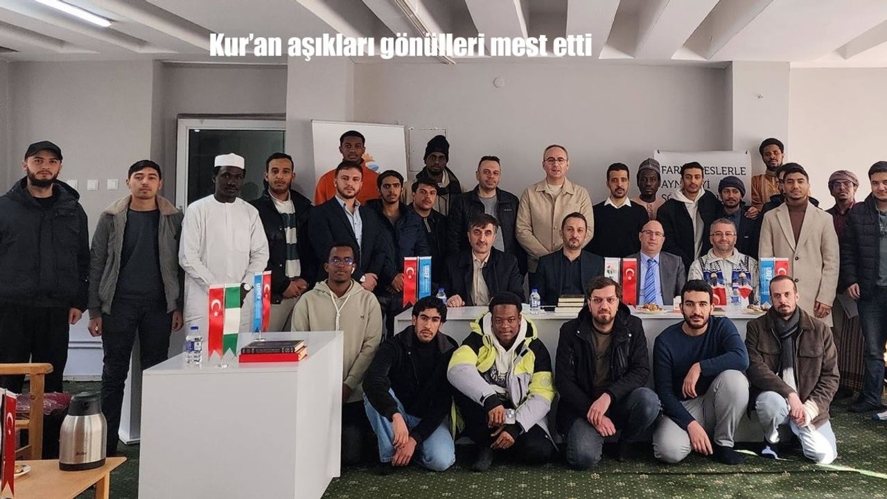 haber49-Üniversite eğitimlerini Erzurum'da devam ettiren dünyanın değişik coğrafyalarından gelen misafir öğrenciler okudukları Kur'an-ı Kerim'le dinleyenleri adeta mest ettiler. 20 farklı ülkeden kırk yedi uluslararası öğrencinin müracaat ettiği yarışmada öğrenciler daha önce belirlemiş oldukları yerleri jüri üyelerine okudular. Kur'an-ı Kerim'i yüzünden okuyan öğrencilerden on kişi ön elemeyi geçerek finalde yarışmaya hak kazandı.
