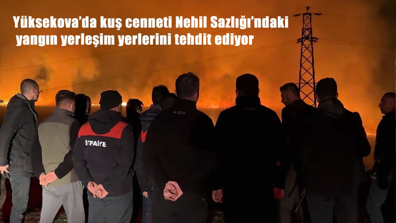 HABER49- Hakkari'nin Yüksekova ilçesinde yüzlerce kuş türüne ev sahipliği yapan Nehil Sazlığı'nda çıkan yangın yerleşim yerlerini tehdit ederken, ekiplerin söndürme çalışmaları devam ediyor.