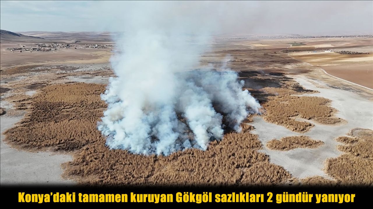 HABER49- Konya'nın Kulu ilçesinde "kuş cenneti" olarak da bilinen ve geçen yıl tamamen kuruyan Gökgöl'deki sazlıklar 2 gündür aralıksız yanıyor.