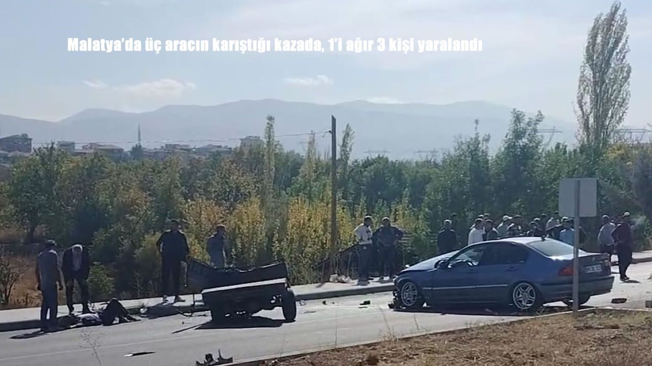 HABER49-Kaza, saat 11.45 sıralarında Battalgazi ilçesine bağlı Hanımınçiftliği Mahallesi'nde meydana geldi. Edinilen bilgilere göre, V.C. idaresindeki 09 DE 023 plakalı otomobil ile V.T. yönetimindeki 44 AHF 776 plakalı otomobil ve G.E. idaresindeki çapa motoru çarpıştı. Kazada araç sürücüleri V.T. ve G.E. hafif şekilde yaralanırken, çapa motorunda yolcu olarak bulunan H.G. ağır yaralandı.