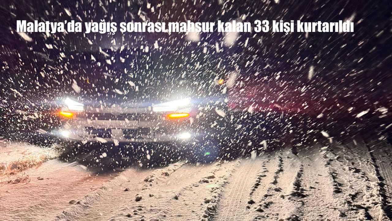 HABER49-Malatya'da, yoğun yağış ve tipi nedeniyle Malatya-Kayseri devlet yolu dün saat 22.30'da tır ve çekicilere kapatılırken, karla mücadele ekiplerinin çalışmaları sonucu yol sabah saat 09.00'da yeniden ulaşıma açıldı. Kent genelinde araçlarıyla mahsur kalan 29 kişi ile Nemrut Dağı'nda mahsur kalan 4 turist, ekiplerin çalışmalarıyla kurtarıldı.