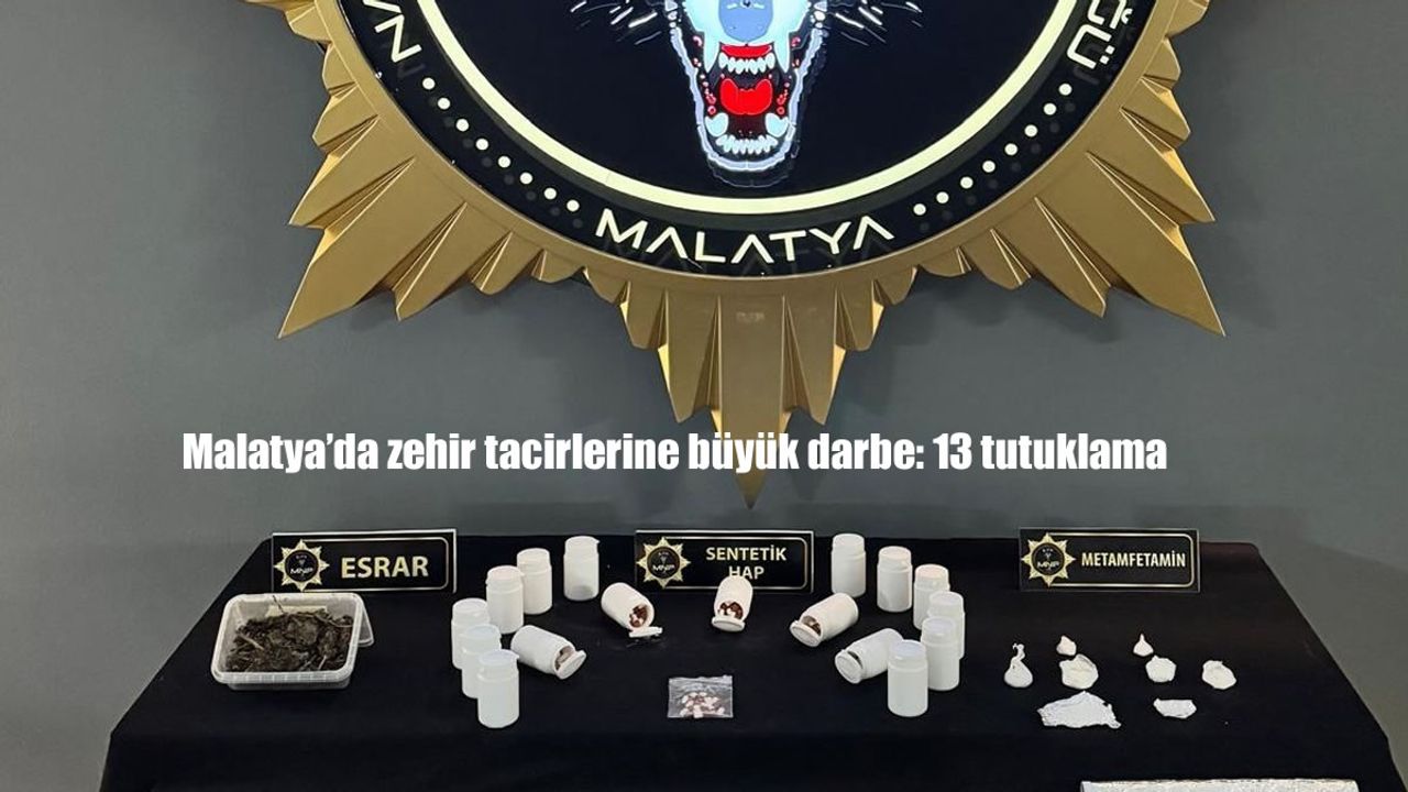 HABER49-Malatya'da, Narkotik Suçlarla Mücadele Şube Müdürlüğü ekipleri tarafından 3 aylık teknik ve fiziki takip sonucu yürütülen projeli dosya kapsamında 14 şüpheliye ait adreslere operasyon düzenlendi. Operasyonda yapılan aramalarda bin 340 adet sentetik ecza hap, 140 gram esrar, 48 gram metamfetamin ve 2 adet hassas terazi ele geçirilirken 14 zanlı gözaltına alındı. Polis merkezindeki işlemlerinin ardından adliyeye sevk edilen zanlılardan 13’ü tutuklandı, 1 şüpheli ise adli kontrol şartıyla serbest bırakıldı.