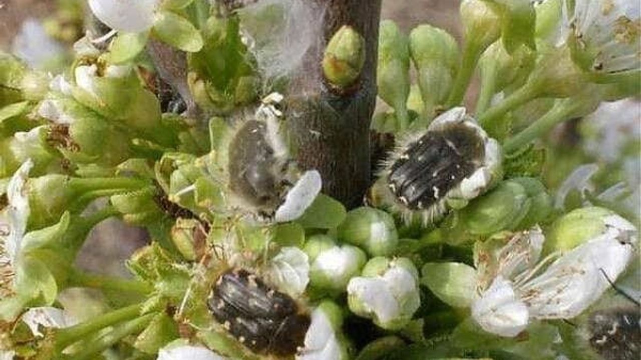 HABER49-Meyve ağaçlarının yaprak, tomurcuk ve meyvelerini yiyerek ürün kaybına yol açan bu zararlı, ergin dönemde yaklaşık 10 milimetre boyunda, siyah mat renkte ve vücutları sarı tüylerle kaplı olarak tanımlanıyor. Kışı toprakta ergin olarak geçiren bakla zınnı, ilkbaharda çiçeklenme döneminde ağaçlarda ortaya çıkarak özellikle çiçek ve genç yapraklarla besleniyor. Bu durum, meyve oluşumunu engelleyerek üreticiler için ciddi ekonomik kayıplara neden olabiliyor.
