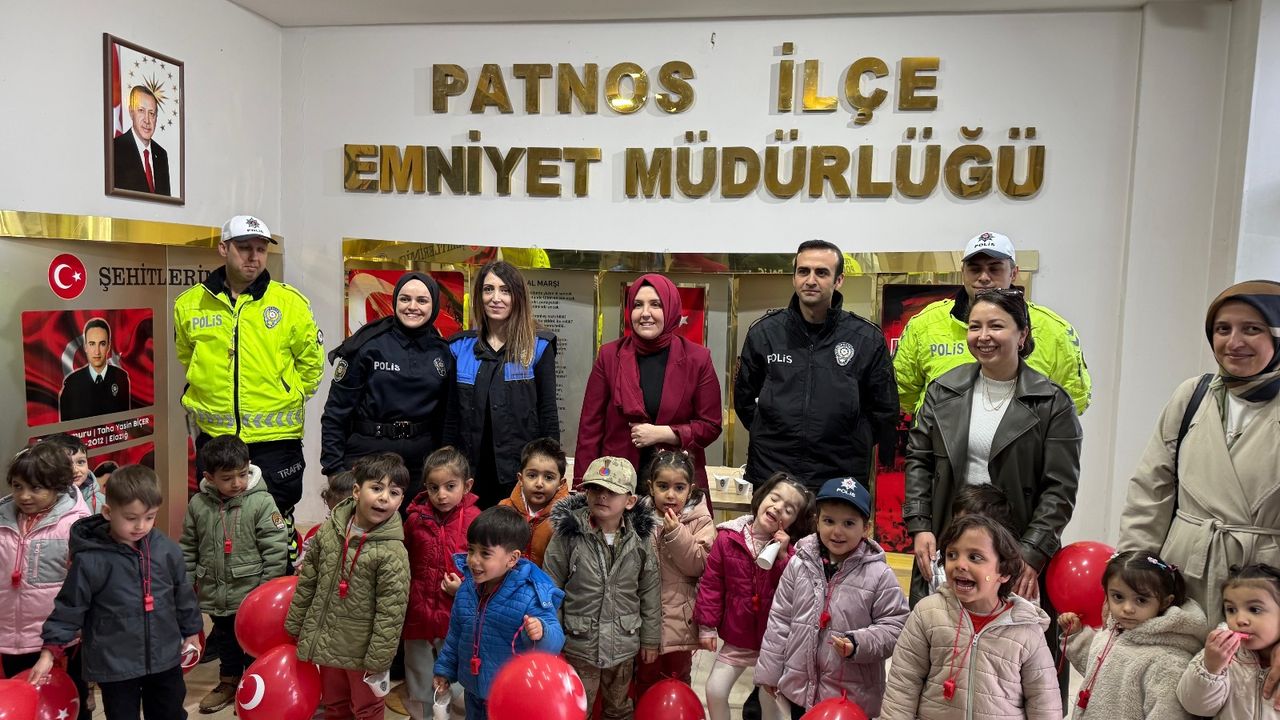 Ağrı’nın Patnos ilçesinde 10 Nisan Polis Haftası dolayısıyla anlamlı bir etkinlik gerçekleştirildi. Babaocağı ve Küçük Mucitler Anaokulu öğrencileri, öğretmenleriyle birlikte Patnos İlçe Emniyet Müdürlüğü’nü ziyaret ederek polis teşkilatının 180. kuruluş yıl dönümünü kutladı. Polis eskortu eşliğinde coşkulu bir şekilde emniyet müdürlüğüne gelen minik öğrenciler, İlçe Emniyet Müdürü Hakan Sarak ve görevli polisler tarafından büyük bir ilgiyle karşılandı. Program, saygı duruşu ile başladı ve öğrencilerin ellerinde taşıdıkları Türk bayrakları eşliğinde okudukları şiirlerle devam etti.