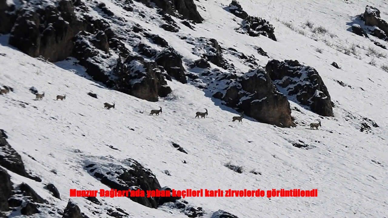 Zorlu bir tırmanışın ardından dağ keçilerini doğal ortamlarında gözlemlemeyi başaran Aydemir, sürü halinde hareket eden keçilerin karlı arazide bata çıka ilerleyerek göç yoluna koyulduğu anları havadan görüntüledi. Yüksek kesimleri halen karla kaplı olan Munzur Dağları’nda yabani hayvan popülasyonunda artış gözlendiği belirtilirken, zaman zaman daha düşük rakımlara inen yaban keçilerinin sürüler halinde dolaştığı görüldü. Avlanması yasak ve koruma altında bulunan yaban keçileri, Uluslararası Doğa Koruma Birliğinin (IUCN) yayımladığı Nesli Tükenme Tehlikesi Altındaki Türlerin Kırmızı Listesi kapsamında yer alan türler arasında bulunuyor. Karla kaplı sarp arazide ilerleyen keçiler, zorlu kış şartlarına rağmen yaşam mücadelesini sürdürüyor.
