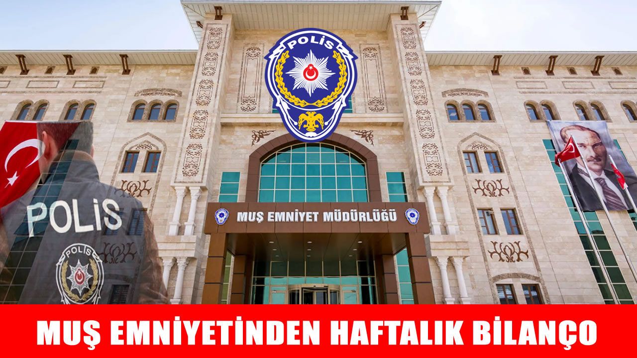 Muş Emniyet Müdürlüğü, 2-8 Mart 2026 tarihleri arasında il genelinde yürütülen güvenlik, asayiş, kaçakçılık, narkotik ve trafik denetimlerine ilişkin haftalık faaliyet raporunu açıkladı. Yapılan çalışmalar kapsamında çok sayıda suç unsuru ele geçirilirken, çeşitli suçlardan aranan kişiler yakalanarak adli işlem uygulandı.