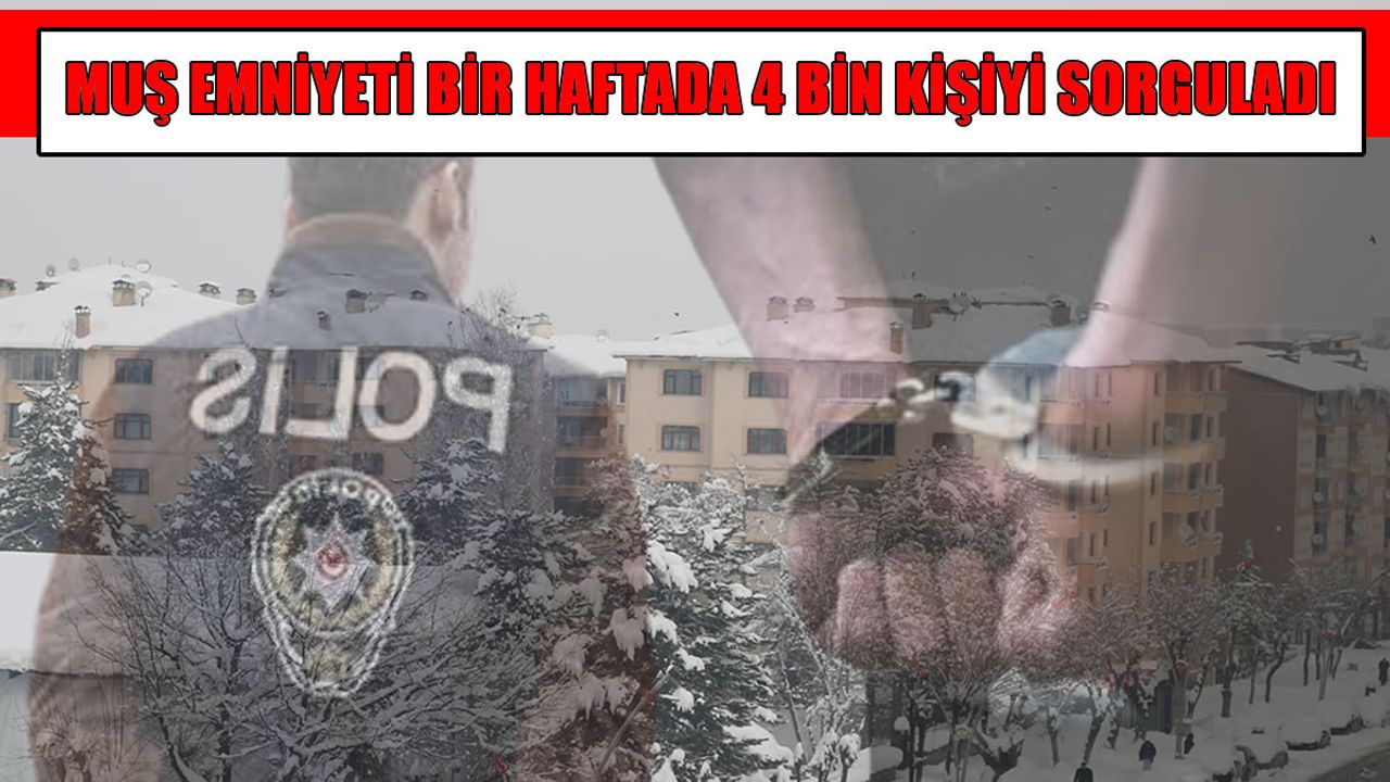 HABER49- Muş Emniyet Müdürlüğü, 12-18 Ocak 2026 tarihleri arasında il genelinde yürüttüğü denetim ve operasyonlara ilişkin verileri paylaştı. Asayiş, narkotik, göçmen kaçakçılığı, kaçakçılık ve trafik başta olmak üzere birçok noktada gerçekleştirilen denetimlerde binlerce kişi sorgulanırken, aranan şahıslar yakalandı; çeşitli suç unsurlarına el konularak adli ve idari işlemler uygulandı.
