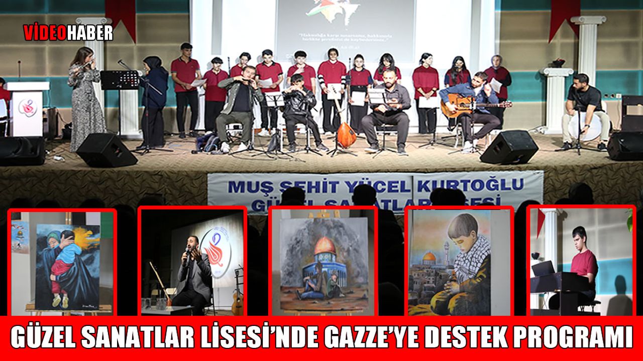 Muş Şehit Yücel Kurtoğlu Güzel Sanatlar Lisesi’nde, Filistin’de yaşanan insani dramı gündeme taşımak amacıyla anlamlı bir etkinlik düzenlendi. Filistin halkına destek olmak amacıyla gerçekleştirilen programda öğrenciler, resim, müzik ve konferans çalışmalarıyla Gazze halkının yaşadığı acılara dikkat çekti.