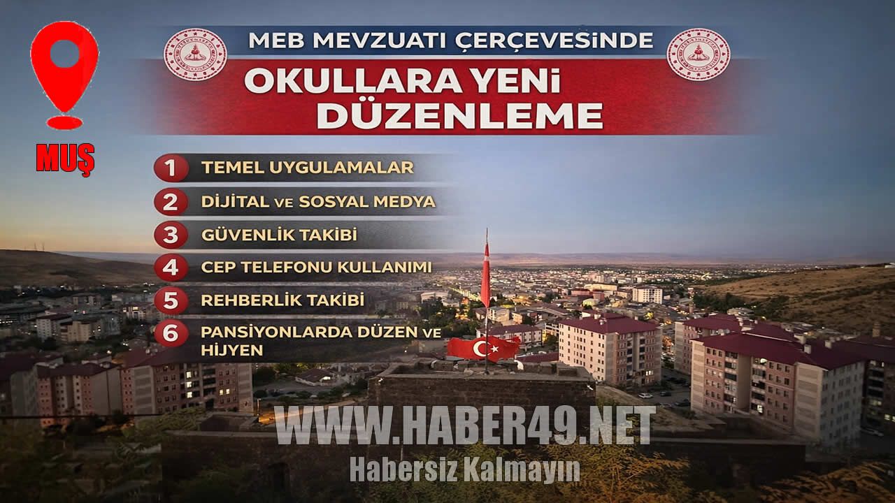 HABER49- Muş İl Milli Eğitim Müdürlüğü, okullarda güvenlik, disiplin ve dijital kullanım kurallarına yönelik kapsamlı bir genel talimat ve duyuru yayımladı. Son dönemde yaşanan okul saldırılarının ardından hazırlanan düzenlemede, eğitim ortamında düzenin sağlanması ve öğrenci güvenliğinin artırılmasının hedeflendiği belirtildi.