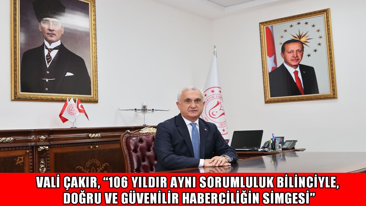 Vali Çakır, mesajında Anadolu Ajansı’nın kuruluş sürecine ve üstlendiği tarihi sorumluluğa dikkat çekerek şu ifadeleri kullandı:
