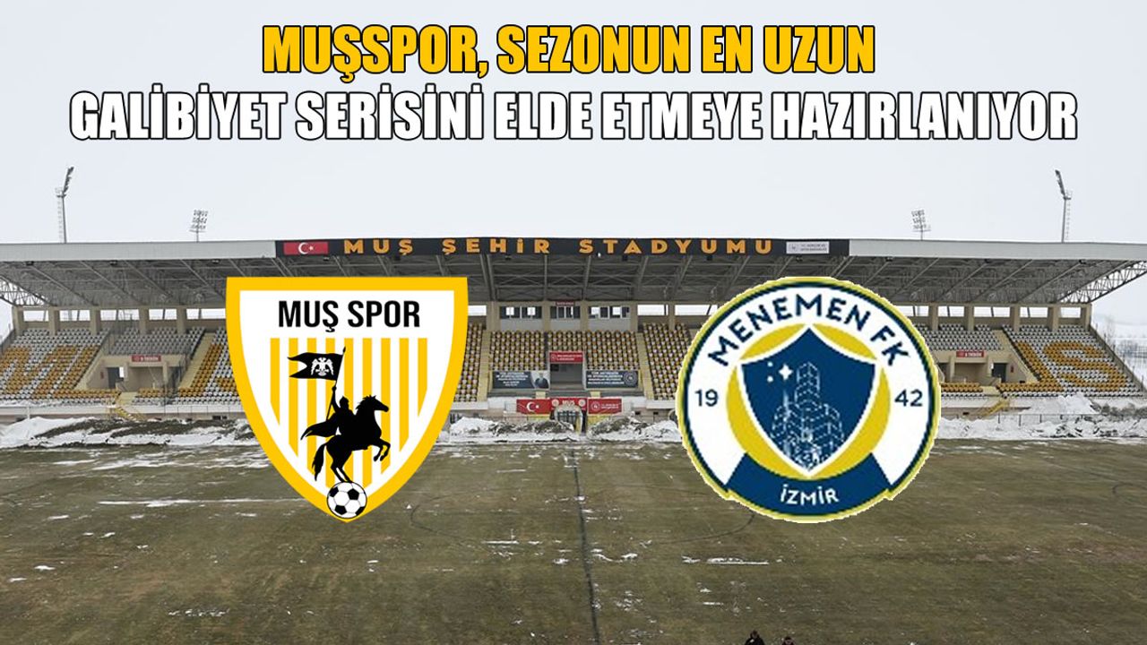Hafta sonu deplasmanda Somaspor’u 2-1 mağlup ederek moral depolayan Muşspor, maç fazlasıyla 2. sıraya yükselerek zirve yarışındaki iddiasını güçlendirdi. Teknik heyet ve futbolcular, Menemen FK karşılaşmasına galibiyet parolasıyla hazırlanırken, alınacak 3 puanın hem puan tablosu hem de psikolojik üstünlük açısından büyük önem taşıdığı ifade ediliyor.