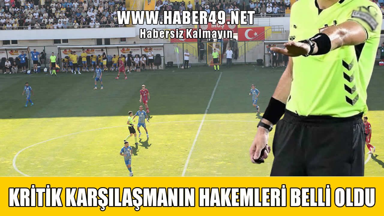 Türkiye Futbol Federasyonu (TFF) Merkez Hakem Kurulu tarafından yapılan atamaya göre, 12 Nisan Pazar günü Muş Şehir Stadyumu’nda oynanacak müsabakayı Bursa bölgesi hakemlerinden Birkan Altındaş yönetecek.