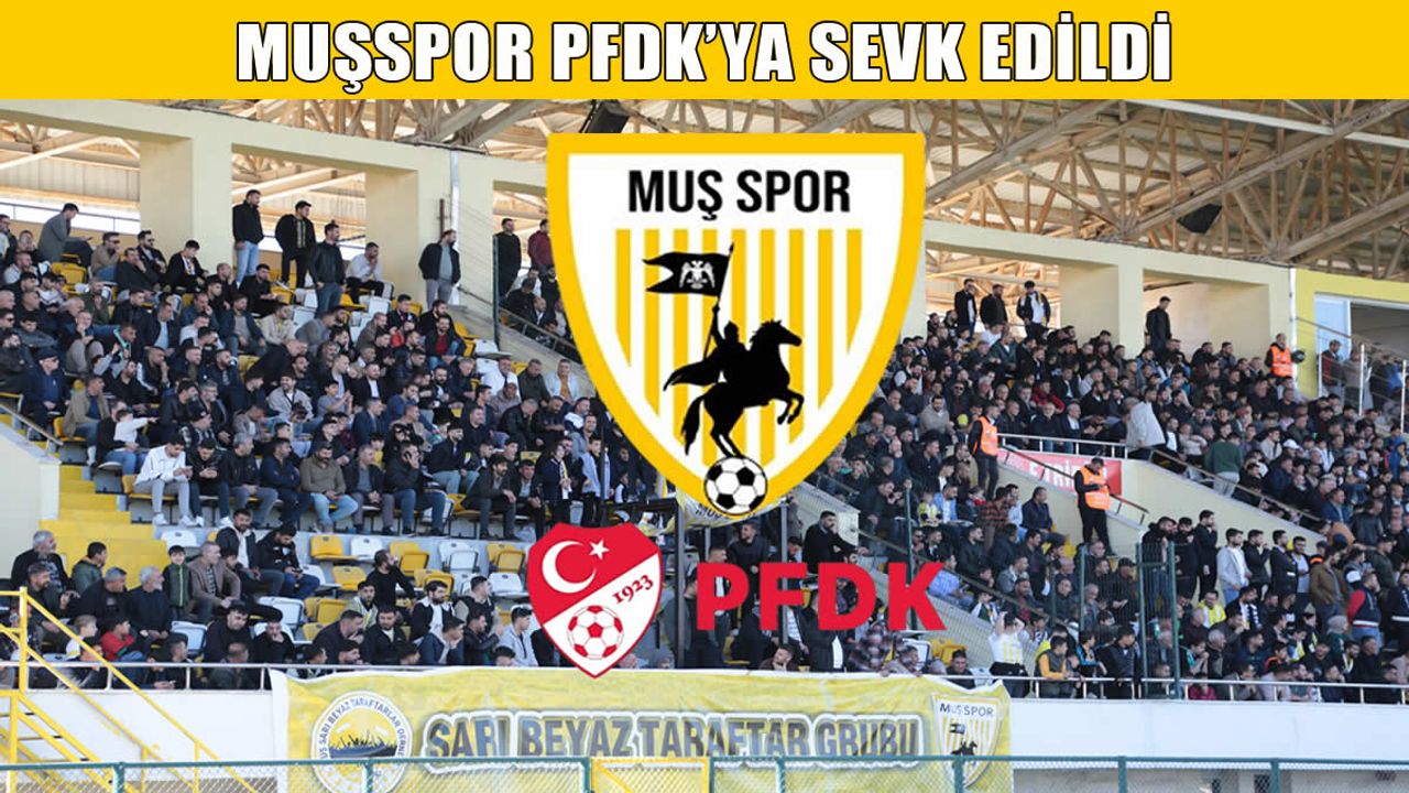 Federasyondan yapılan bilgilendirmeye göre, Muşspor’un söz konusu maçta taraftarların “çirkin ve kötü tezahürat”ı nedeniyle Futbol Disiplin Talimatı’nın 53. maddesi uyarınca; ayrıca “merdiven boşluklarının boş bırakılmaması” gerekçesiyle Futbol Disiplin Talimatı’nın 49. maddesi kapsamında PFDK’ya sevkine karar verildi.