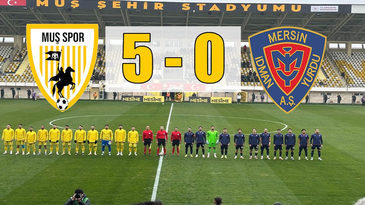 Uzatma dakikalarında Mersin adına Jakob'un sert şutunun direkten dönmesi tek teselli olurken, Muşspor sahadan 5-0'lık görkemli bir galibiyetle ayrılarak büyük sevinç yaşadı.