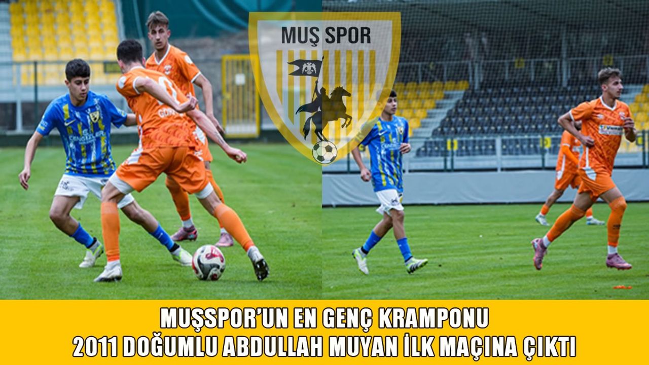 2011 doğumlu Abdullah Muyan, Muşspor’un bugün Adanaspor ile oynadığı lig maçınının son bölümlerinde oyuna dahil olarak sarı-beyazlı formayla sahadaki yerini aldı.