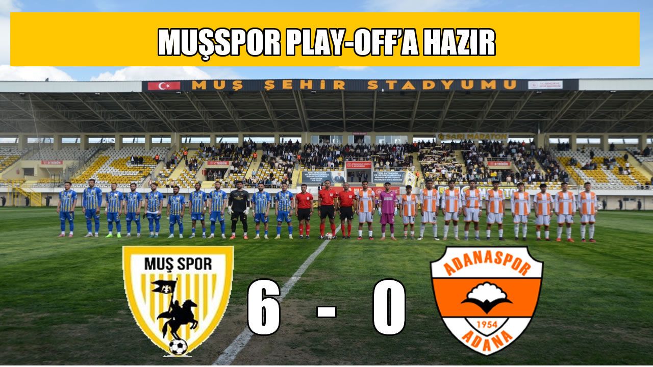 TFF 2. Lig Kırmızı Grup temsilcisi Muşspor, normal sezonun final maçında tarihi bir galibiyete imza attı. Kendi sahasında Adanaspor’u ağırlayan Muş temsilcisi, yaklaşık 80 dakika eksik oynadığı müsabakadan 6-0 galip ayrılarak şampiyonluk yolunda rakiplerine güçlü bir mesaj verdi.