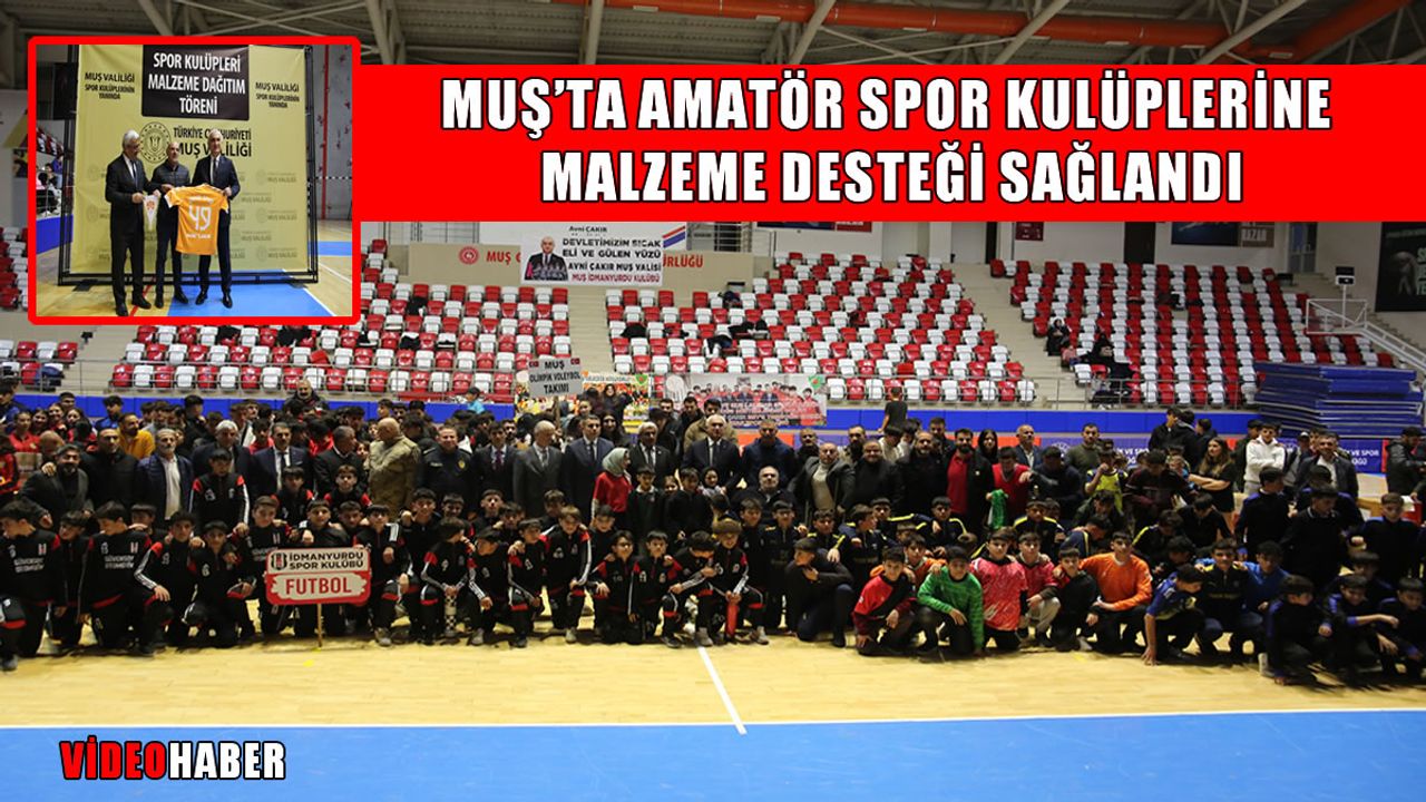 Muş Yeni Spor Salonu'nda yapılan törende toplam 35 amatör spor kulübüne malzeme desteği sağlandı. Bu destekle birlikte Muş’ta spor altyapısının güçlendirilmesi ve genç sporcuların motivasyonunun artırılması hedefleniyor.
