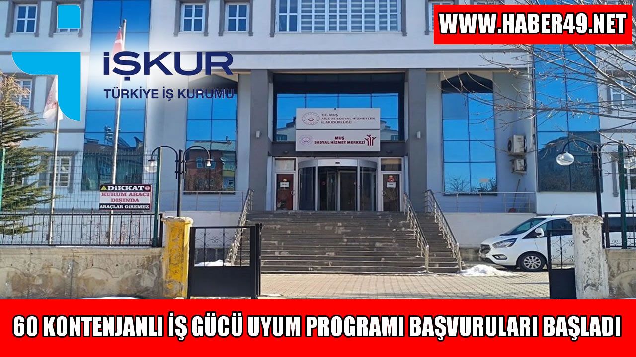 HABER49- Muş Aile ve Sosyal Hizmetler İl Müdürlüğü ile Muş Çalışma ve İş Kurumu (İŞKUR) İl Müdürlüğü iş birliği kapsamında düzenlenen İşgücü Uyum Programı (İUP) için başvuru süreci başladı.