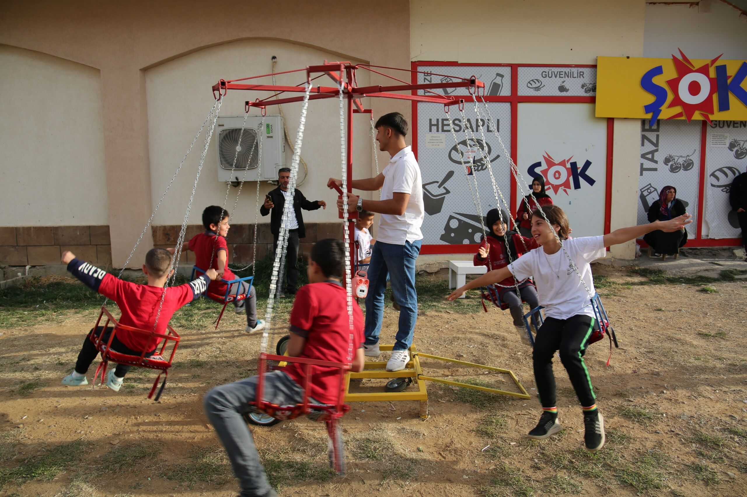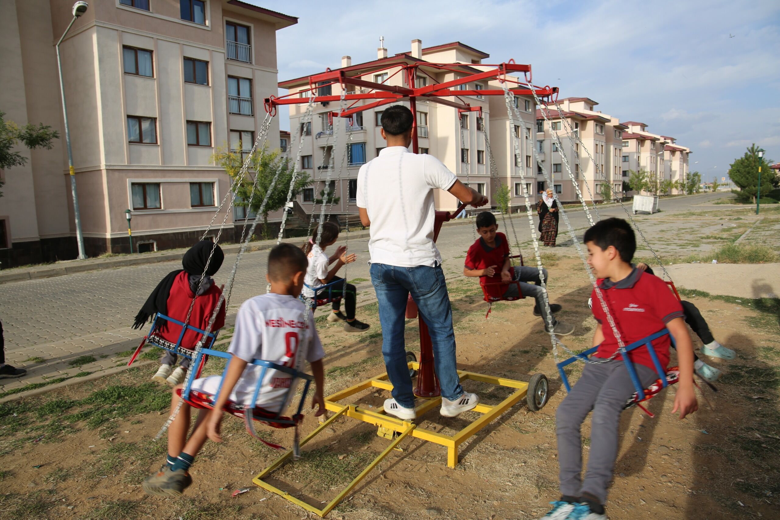 Dönme dolabı çocukların ayağına götürdüklerini söyleyen Korkmaz, “Toki sakinleri olarak çocuklarımızın eğlence yeri yok, biz de bu salıncağı başka bir yerden istedik çocukların eğlenmesi için, şu an çocuklar çok güzel eğleniyor. İlkokul zaten burada çocuklar okuldan çıktığı gibi anneleriyle birlikte buraya gelip eğleniyorlar. Daha farklı planlarımız var çocukların eğlenmesi için. Biz çocukların ayağına gidip onları eğlendiriyoruz. Salıncağımız insan gücüyle çalışıyor. Yeşilçam filmlerindeki çocuklar da bu şekilde eğleniyordu.” şeklinde konuştu.