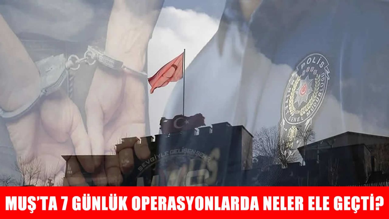 Kaçakçılık ve Organize Suçlarla Mücadele Şube ekipleri, 7 adreste eş zamanlı operasyon düzenleyerek 2 ruhsatsız tabanca, 2 şarjör, 7 tabanca fişeği, 2 av tüfeği ve 286 adet tarihi eser niteliğinde obje ele geçirdi; 7 kişi hakkında adli işlem başlatıldı. Bulanık ve Varto ilçelerinde de silah kaçakçılığı ve uyuşturucu suçlarına yönelik operasyonlar gerçekleştirildi.